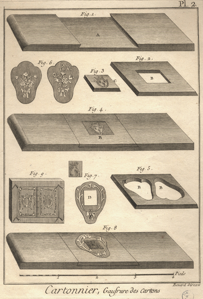 Planche pour l'Encyclopédie : gaufrure des cartons