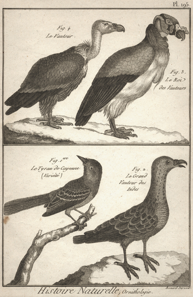 Illustration pour l'Encyclopédie : quatre figures de rapaces