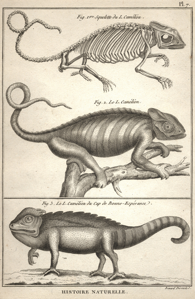 Illustration pour l'Encyclopédie : trois figures de caméléons