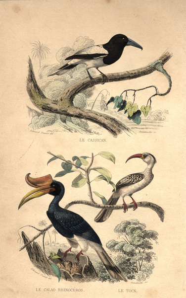 Le Cassican, le Calao rhinoceros, le Tock d après Edouard Traviès