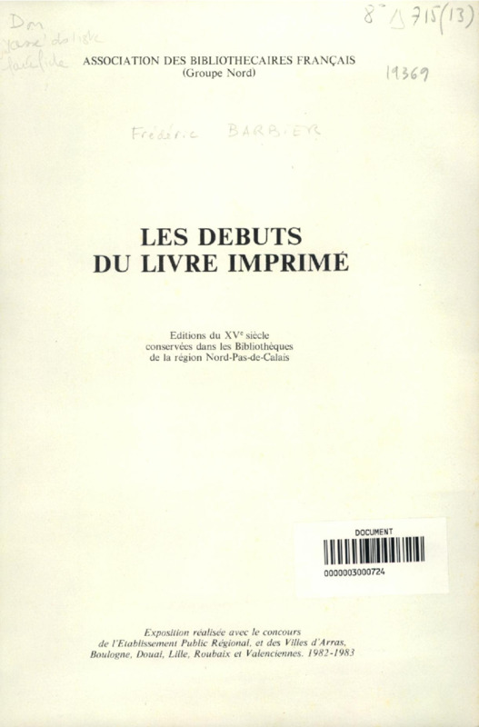 Les débuts du livre imprimé : éditions du XVe siècle conservées dans les bibliothèques de la région Nord-Pas-de-Calais