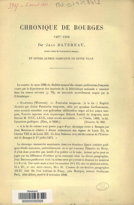 Chronique de Bourges, 1467-1506