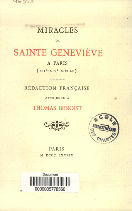 Miracles de Sainte Geneviève à Paris, XIIe-XIVe siècle