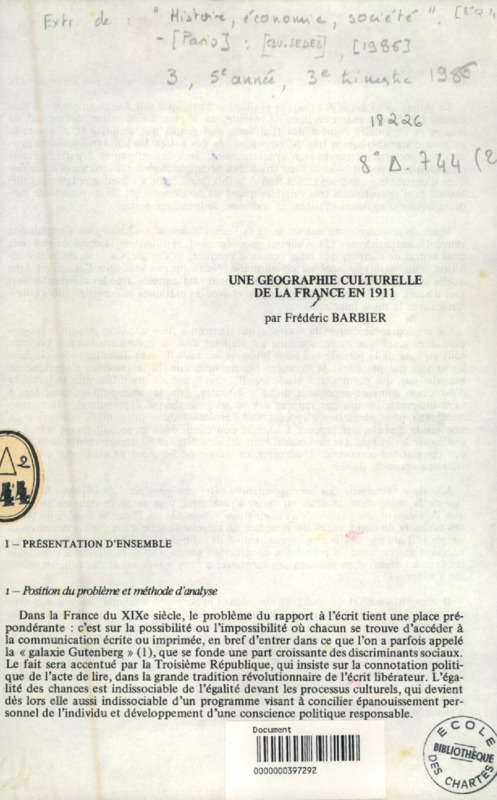 Une géographie culturelle de la France en 1911