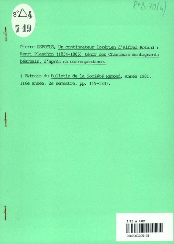 Un continuateur lozérien d'Alfred Roland : Henri Planchon (1834-1885) ténor des chanteurs montagnards béarnais, d'après sa correspondance