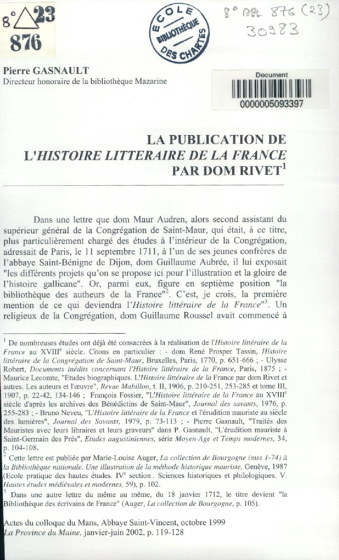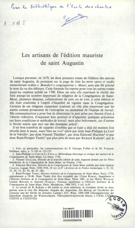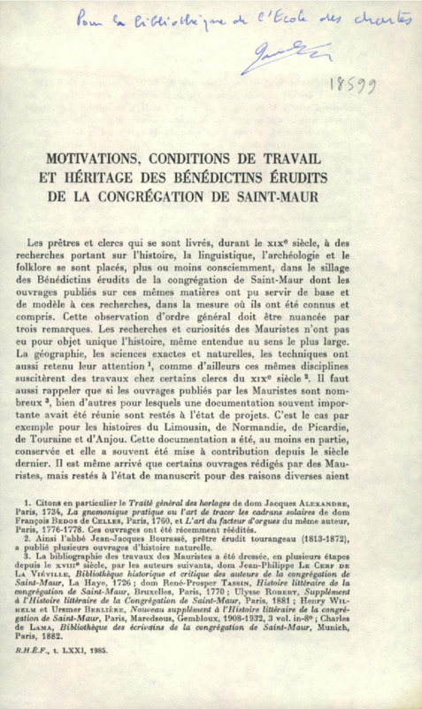 Les travaux d'érudition des Mauristes au XVIIIe siècle