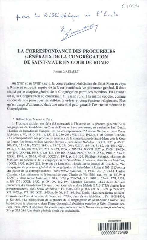 Sujet : Bénédictins de la Congrégation de Saint-Maur