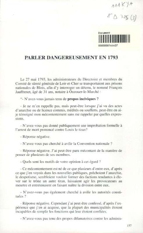 Parler dangereusement en 1793