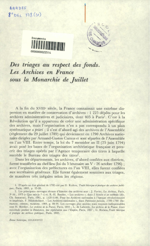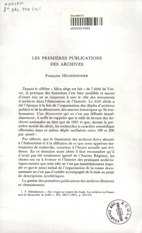 Les premières publications des Archives