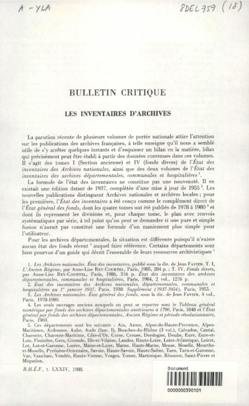 Bulletin critique : les inventaires d'archives
