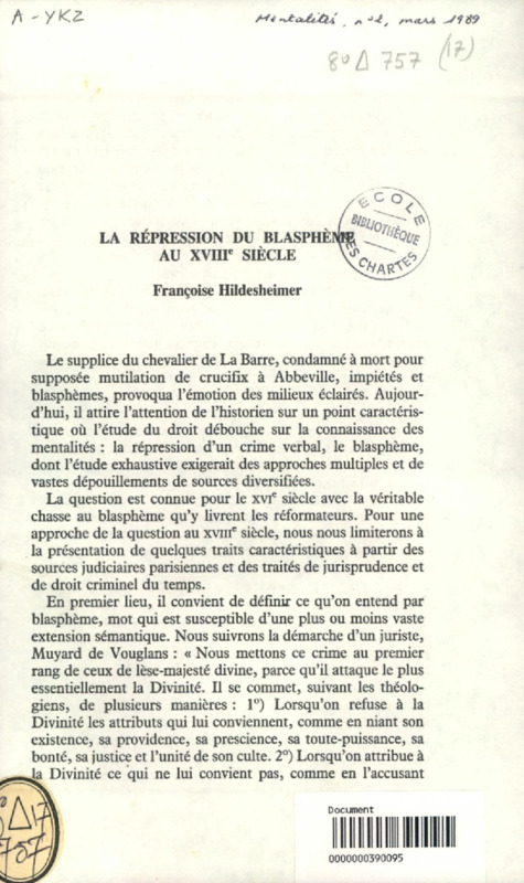 La répression du blasphème au XVIIIe siècle