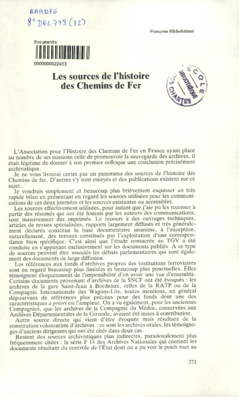 Les sources de l'histoire des chemins de fer