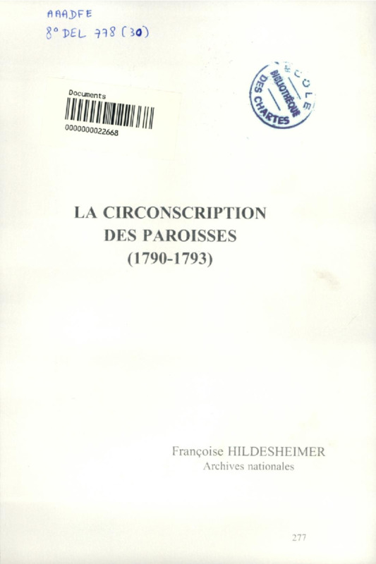 La Circonscription des paroisses (1790-1793)