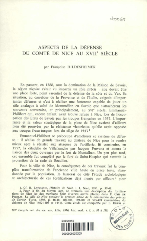 Aspects de la défense du comté de Nice au XVIIe siècle