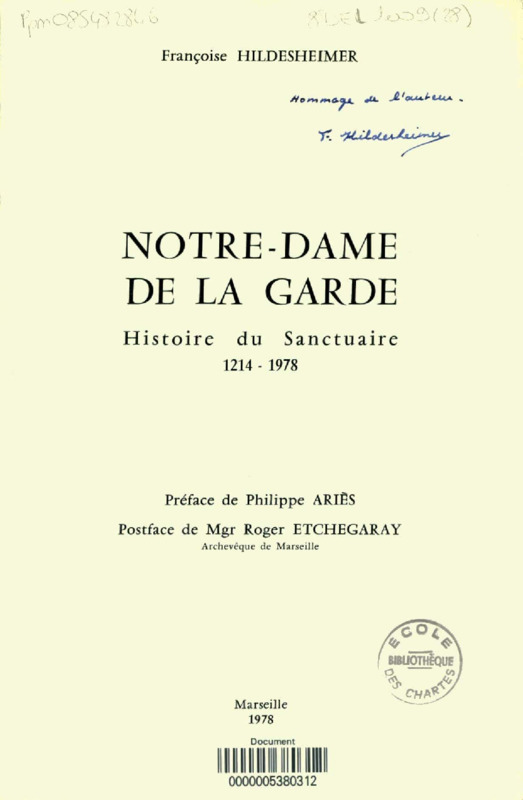 Notre-Dame de la Garde : histoire du Sanctuaire 1214-1978