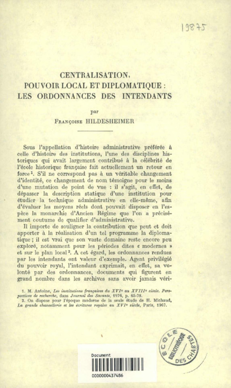 Centralisation, pouvoir local et diplomatique : les ordonnances des intendants