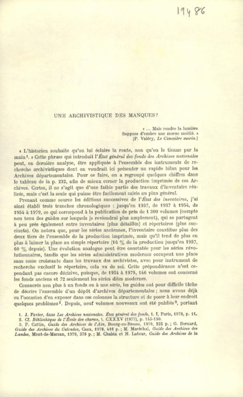 Une archivistique des manques ?