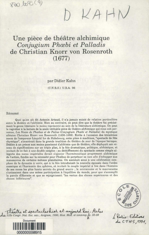 Une pièce de théâtre alchimique Conjugium Phoebi et Palladis de Christian Knorr von Rosenroth, 1677
