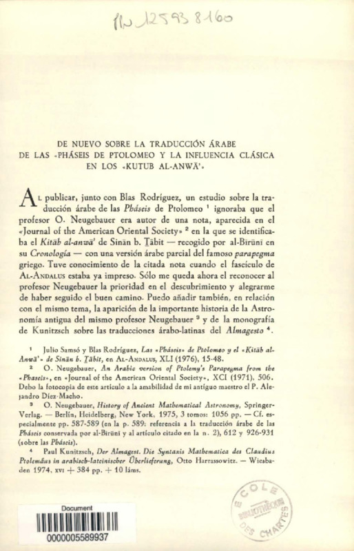 Alfonso X y los orígenes de la astrología hispánica : discurso de recepción leído el día 2 de abril de 1981 en la Real academia de buenas letras de Barcelona