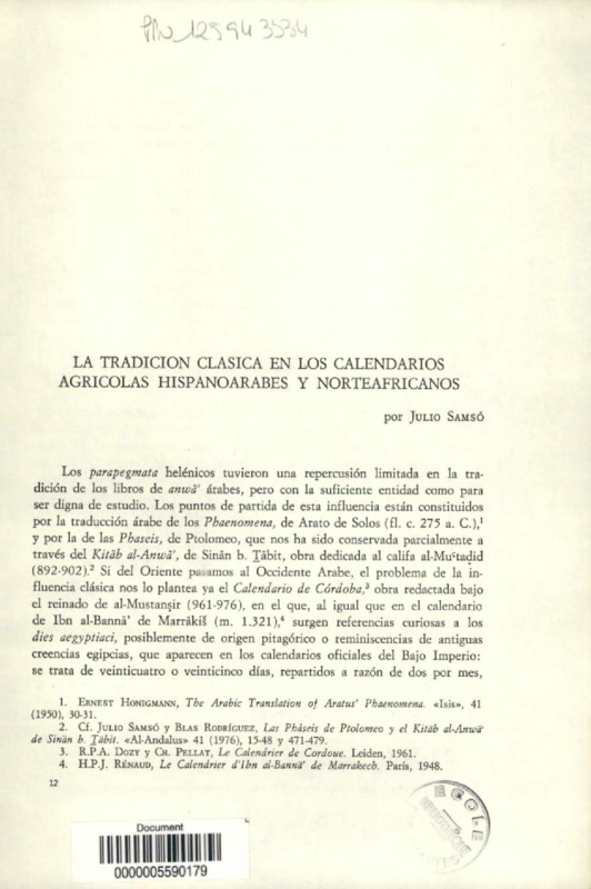 La tradicion clasica en los calendarios agricolas hispanoarabes y norteafricanos