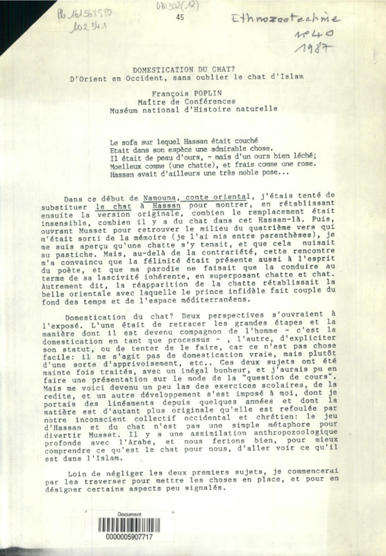 Domestication du chat? : d'Orient en Occident, sans oublier le chat d'Islam