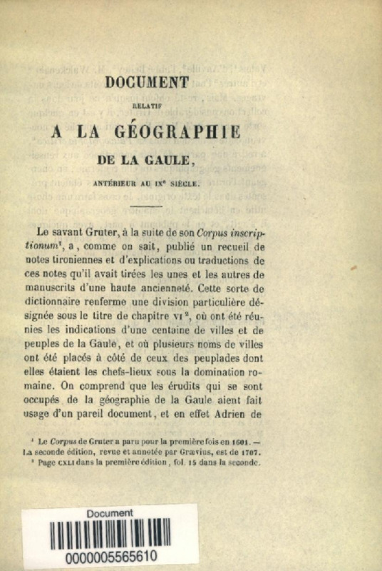 Document relatif à la géographie de la Gaule ancienne au IXe siècle, lu à la séance de la Société des antiquaires de France du 19 novembre 1850, par M. F. Bourquelot