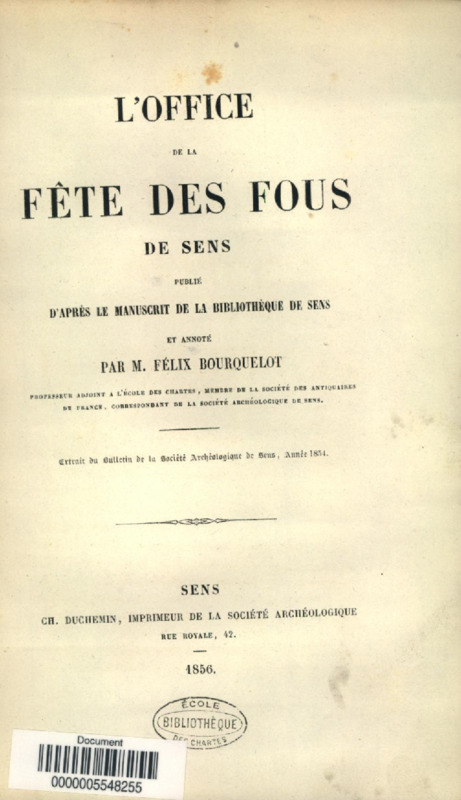 L'office de la fête des fous : publié d'après le manuscrit de la Bibliothèque de Sens et annoté