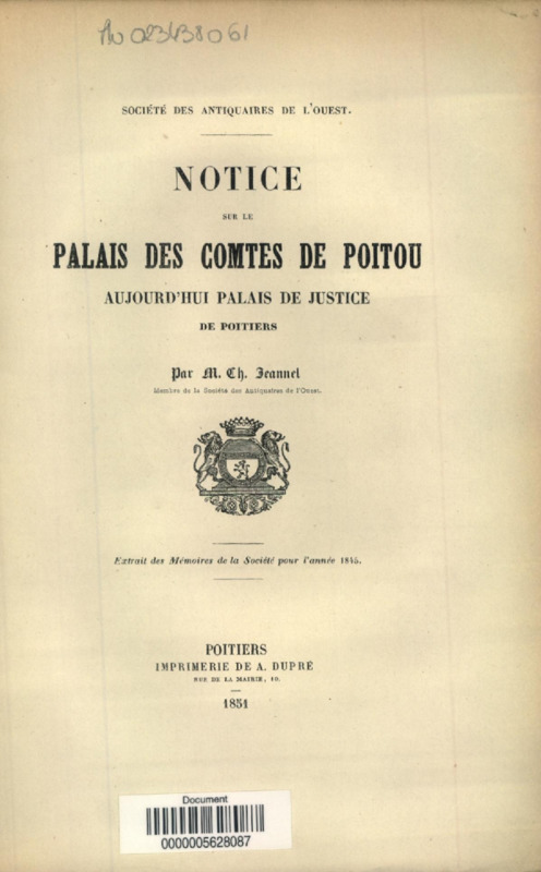 Notice sur le Palais des Comtes de Poitou : aujourd' hui palais de Justice de Poitiers