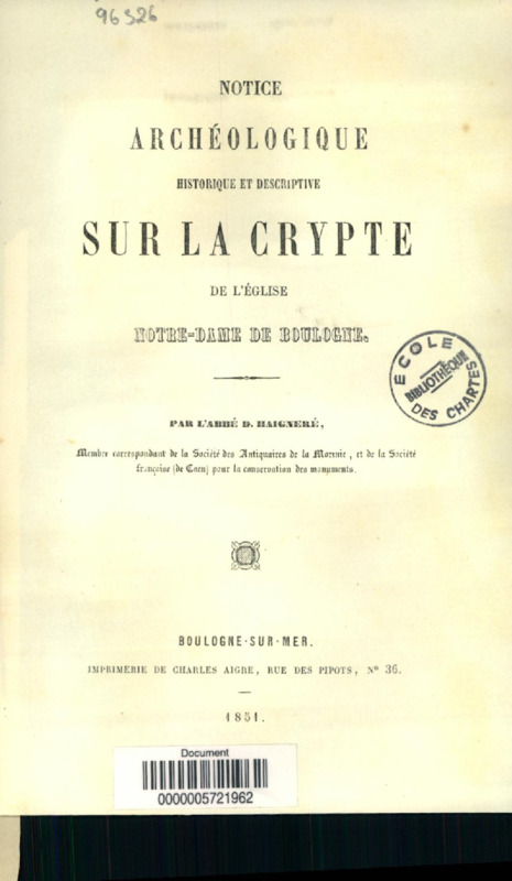 Notice archéologique, historique et descriptive sur la crypte de l'église Notre-Dame de Boulogne