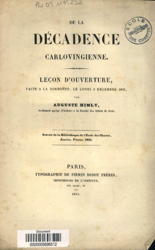 De la décadence carlovingienne : leçon d'ouverture faite à la Sorbonne, le lundi 9 décembre 1850