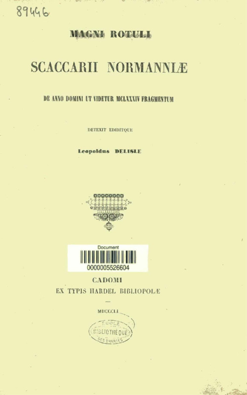 Magni Rotuli Scaccarii Normanniae de anno Domini ut videtur MCLXXXIV fragmentum detexit ediditque Leopoldus Delisle