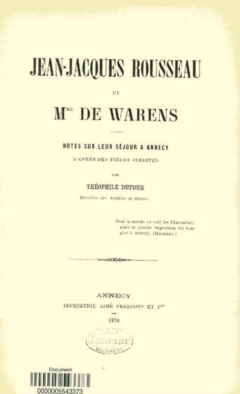 Jean-Jacques Rousseau et Madame de Warens