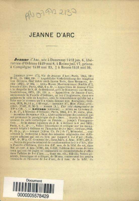 Jeanne d'Arc, bio-bibliographie