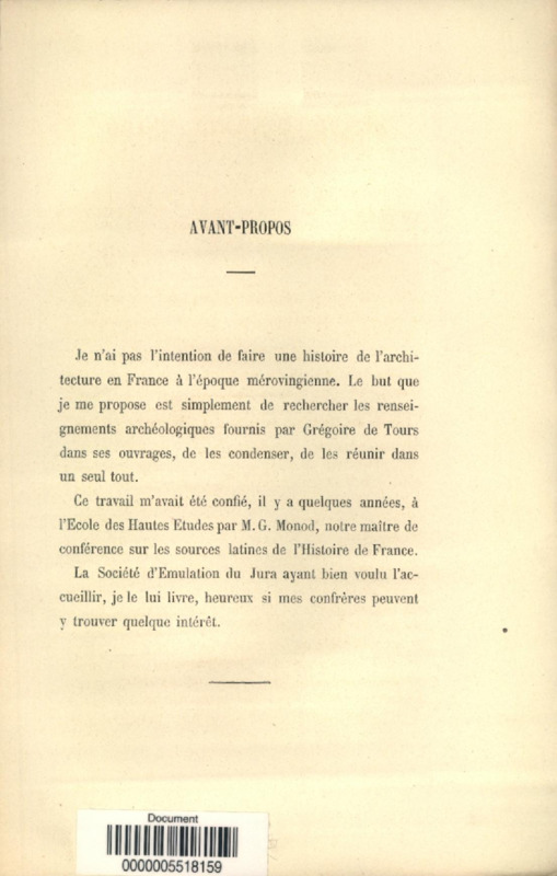 Etude archéologique sur Grégoire de Tours