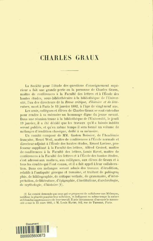 Discours prononcés sur la tombe de Charles Graux