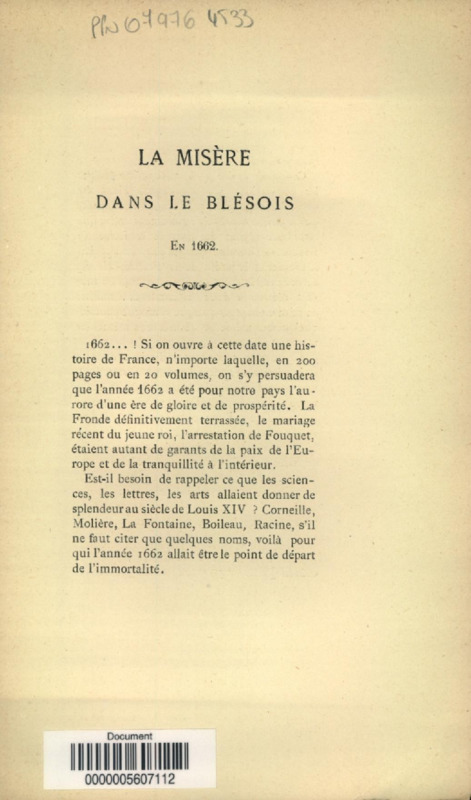 La Misère dans le Blésois en 1662