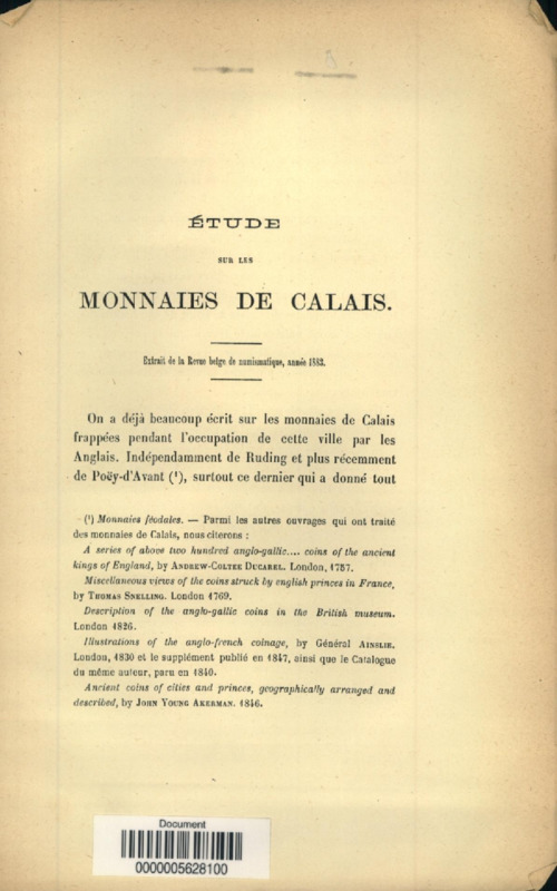 Etude sur les monnaies de Calais