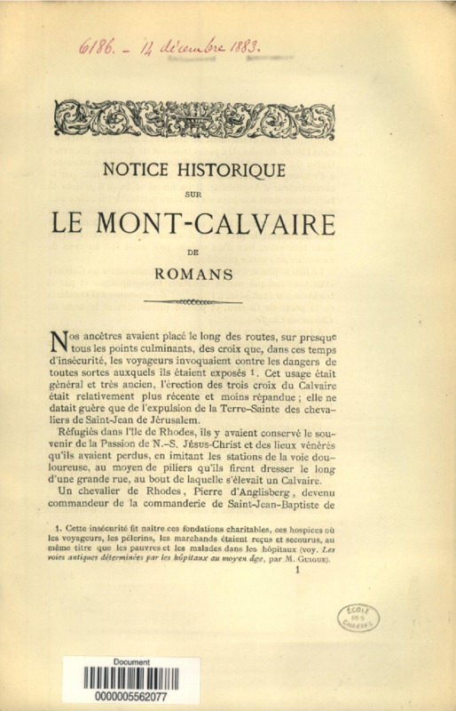 Notice historique sur le Mont-Calvaire de Romans