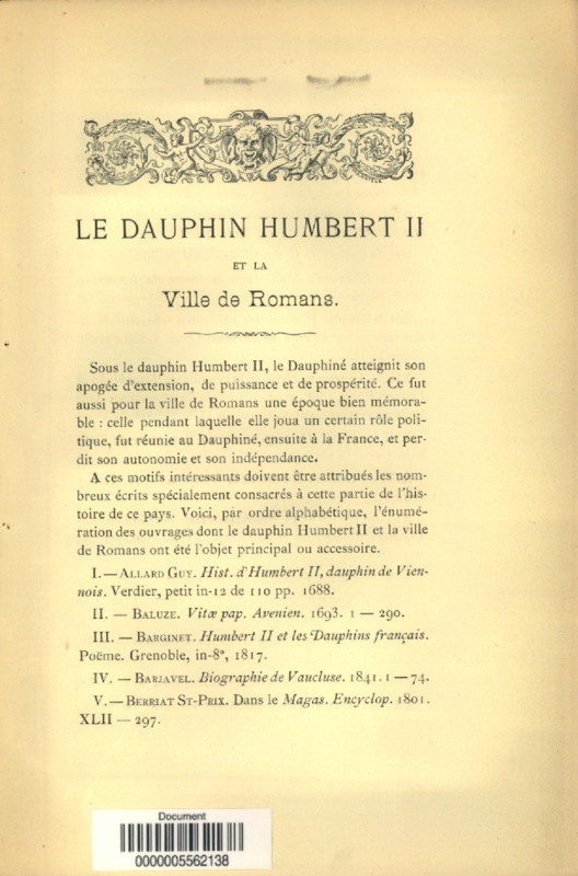 Le Dauphin Humbert II et la ville de Romans