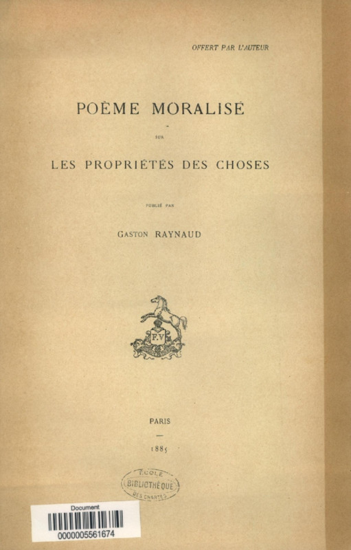 Poème moralisé sur les propriétés des choses