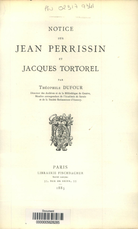 Notice sur Jean Perrissin et Jacques Tortorel