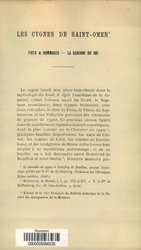 Les cygnes de Saint-Omer : fiefs et hommages- la garenne du roi