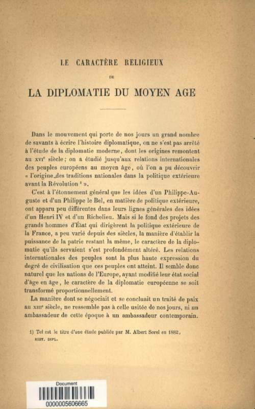 Etudes sur la diplomatie du Moyen âge, son caractère religieux