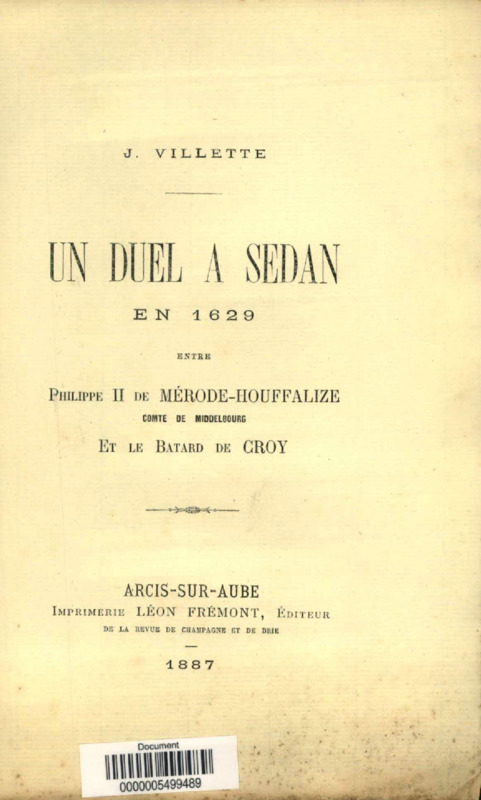 Un duel à Sedan en 1629 entre Philippe II de Mérode-Houffalize, comte de Miquelbourg, et le batard de Croy