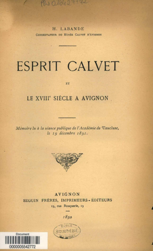 Esprit Calvet et le XVIIIe siècle à Avignon