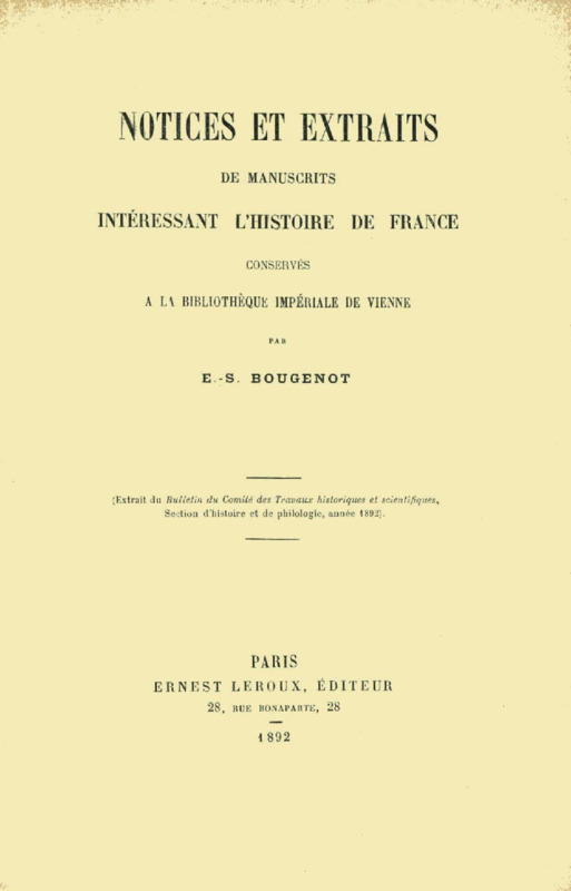 Notices et extraits de manuscrits intéressant l'histoire de France conservés a la bibliothèque impériale de Vienne
