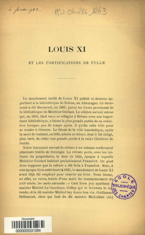 Louis XI et les fortifications de Tulle, d'après un document récemment découvert à Brême