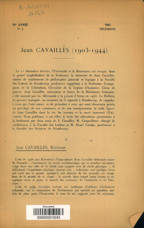 Jean Cavaillès, 1903-1944