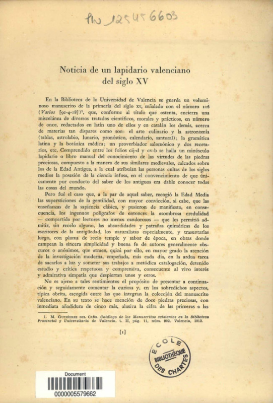 Noticia de un lapidario valenciano del siglo XV