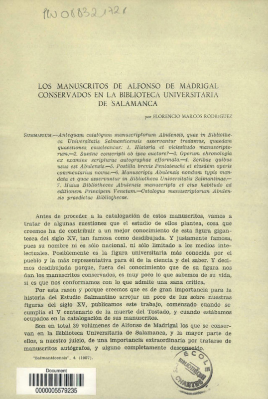 Los manuscritos pretridentinos hispanos de ciencias sagradas en la Biblioteca Universitaria de Salamanca